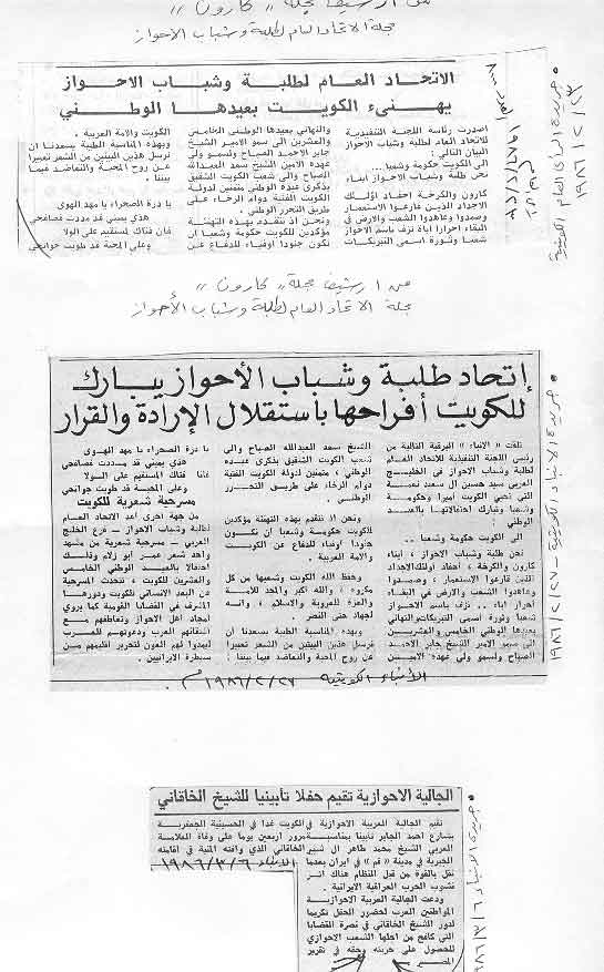 وثيقة رقم 7 : جريدة الانباء نشرت رسالة الاتحاد العام لطلبة وشباب الأحواز