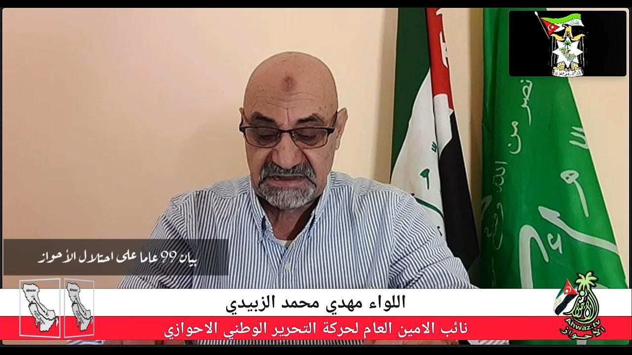 عقدت قيادة حركة التحرير الوطني الأحوازي اجتماعات ومشاورات مطولة لدراسة الوضع السياسي العام للساحة الأحوازية في الخارج والاوضاع العربية والدولية و مشاريع العدو الايراني وسياساته ومخططاته الرامية الى اجهاض تطلعات الشعوب غير الفارسية المحتلة من ايران ؛ خلصت هذه المداولات الى بعض ما تضمنه بيان 99 عاما على الاحتلال الايراني لدولة الأحواز المحتلة الذي اصدرته القيادة المركزية لحركة التحرير الوطني الأحوازي ؛ اليكم نصه كتابة وفيديو القاه الأخ اللواء مهدي محمد حسين الزبيدي نائب الامين العام لحركة التحرير الوطني الأحوازي :
