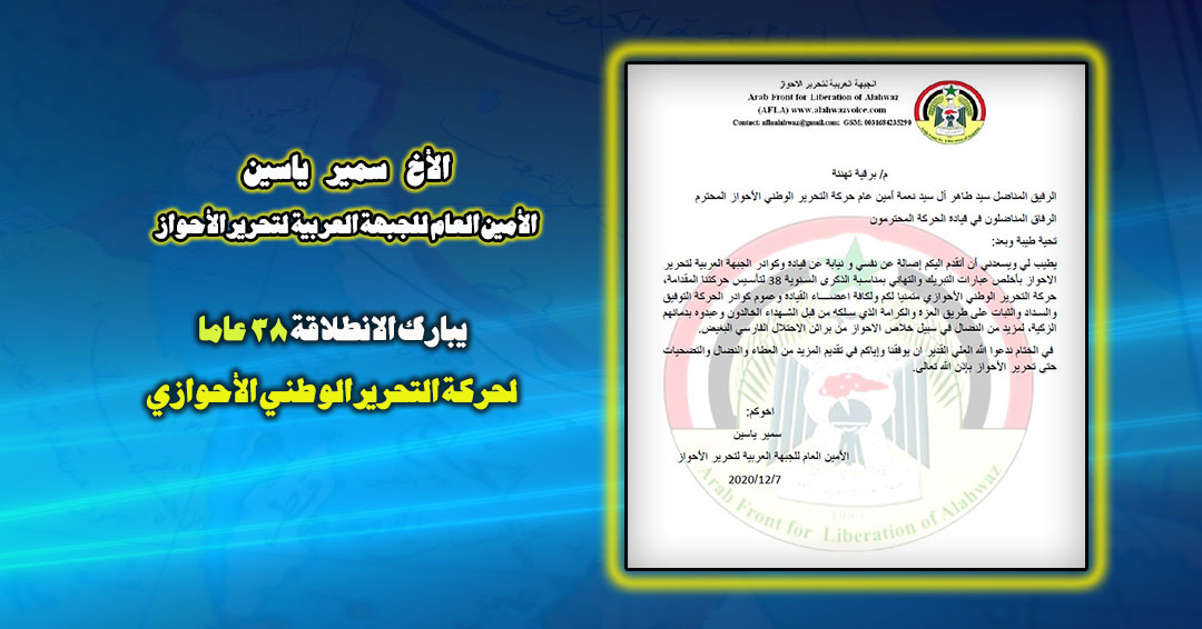 ان حركة التحرير الوطني الاحوازي تعتذر عن تقديم التهاني او تلقيها في عيد الفطر المبارك وذلك لما تمر به امتنا العربية :