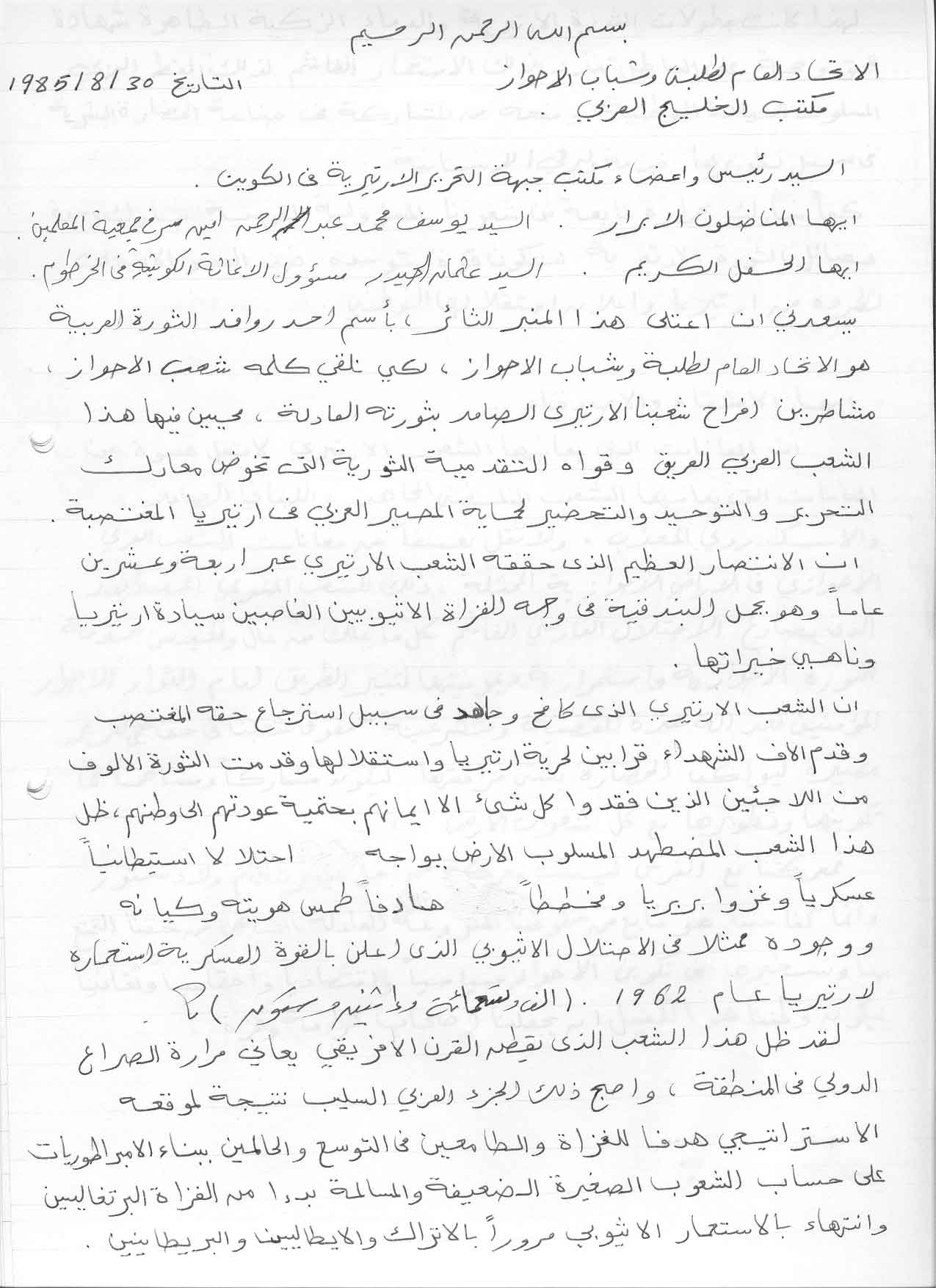 وثيقة رقم 4 : نص رسالة الأحواز في احدى احتفالات