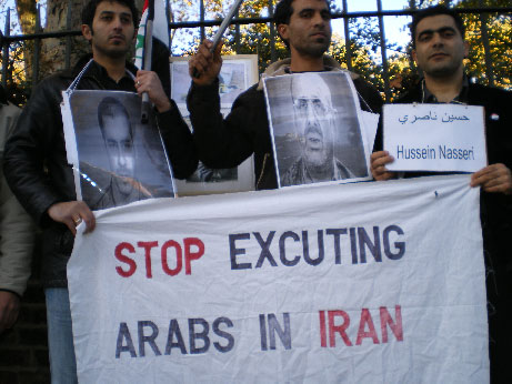 وطالب ابناء الاحواز الغيارى من امام مبنى السفارة الايرانية في لندن